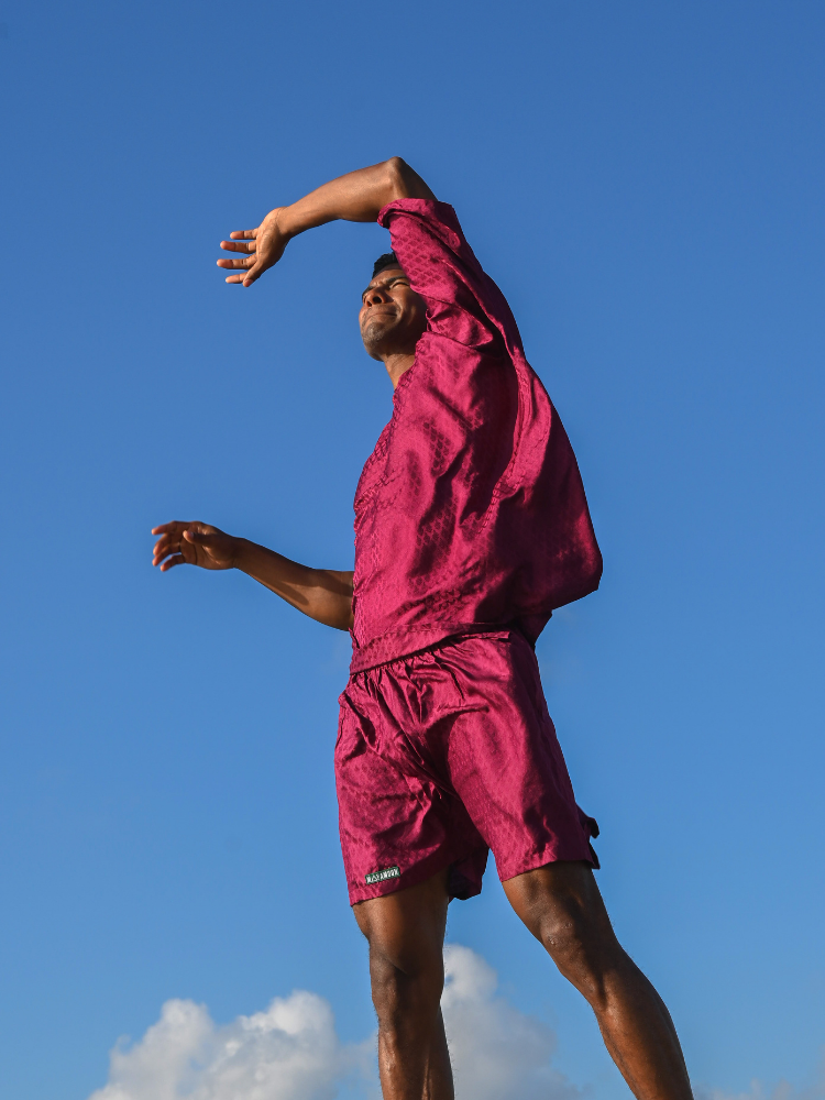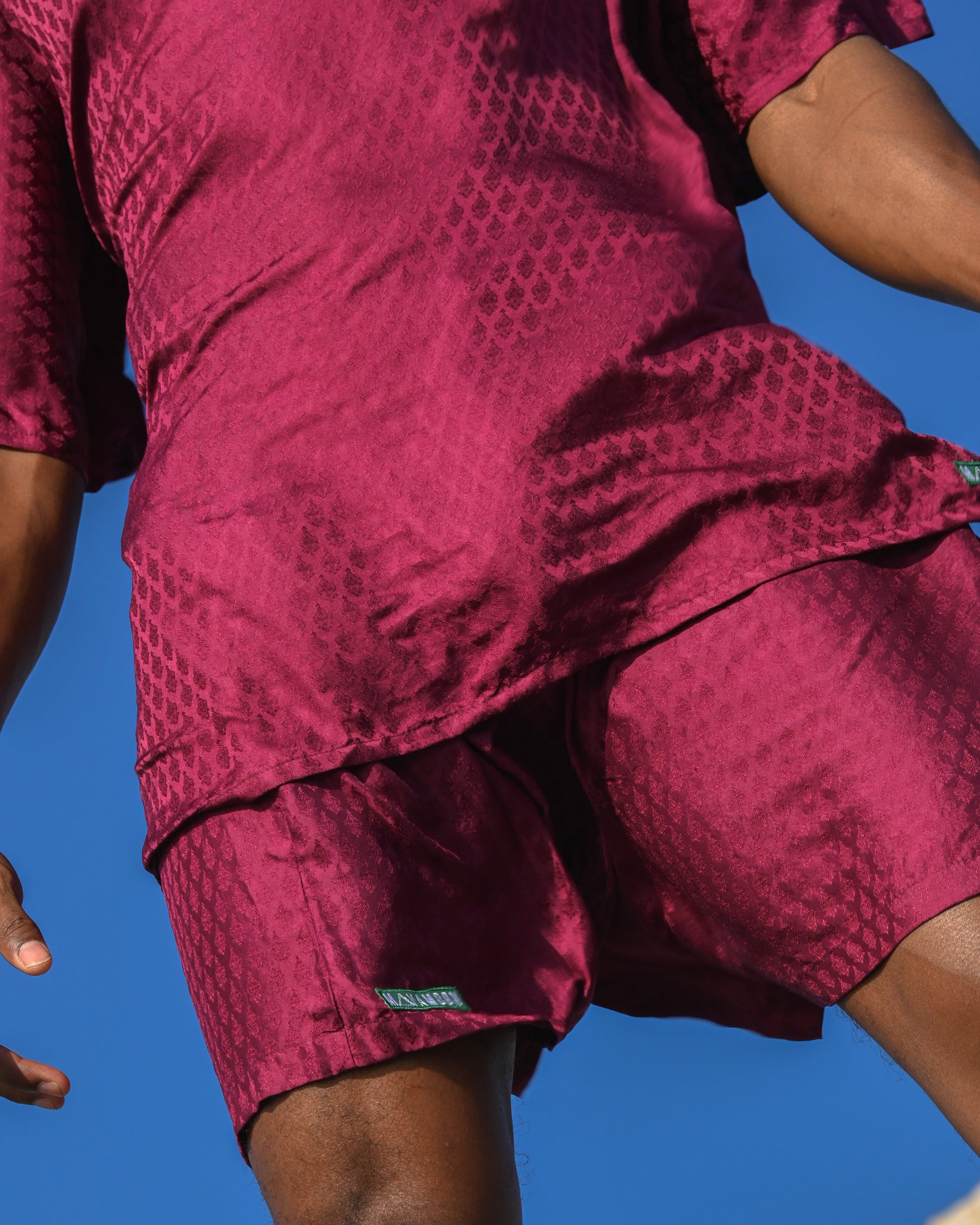 The Zaffran Set is crafted from 100% pure silk. Light and expressive, presented in Zaffran, a deep, spiced burgundy tone. A timeless expression of craftsmanship and confidence, the Zaffran Set is made for those who appreciate understated luxury, movement, and bold elegance.